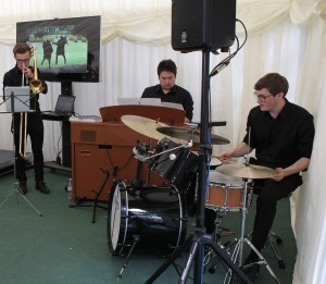 A group of three Heriot-Watt musicians, and more so very good friends, comprising of Fraser Sharp, Kyle Kinnear and Jack Lodge playing drums, jazz keys and trombone respectively. The trio is set to enjoy its second consecutive year playing at the event following a year of musical road trips and music courses around the West and North coasts of Scotland!